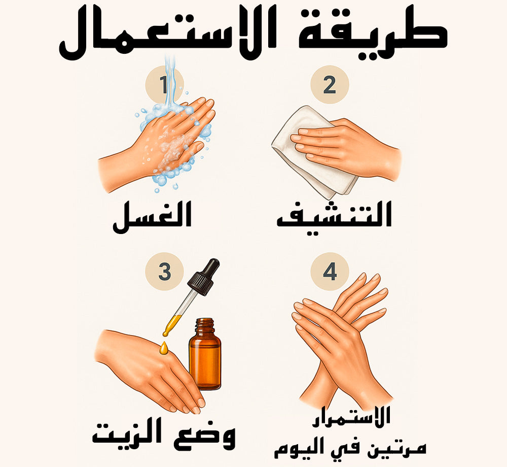 يا جماعة هالزيت فعلاً رهيب 🔥، كنت أتحرج من اسمرار مفاصل أصابعي، استخدمته مرتين باليوم وصار فيه فرق واضح خلال أسبوع. أهم شي إنه ما يسبب أي تحسس أو حرقان 👏