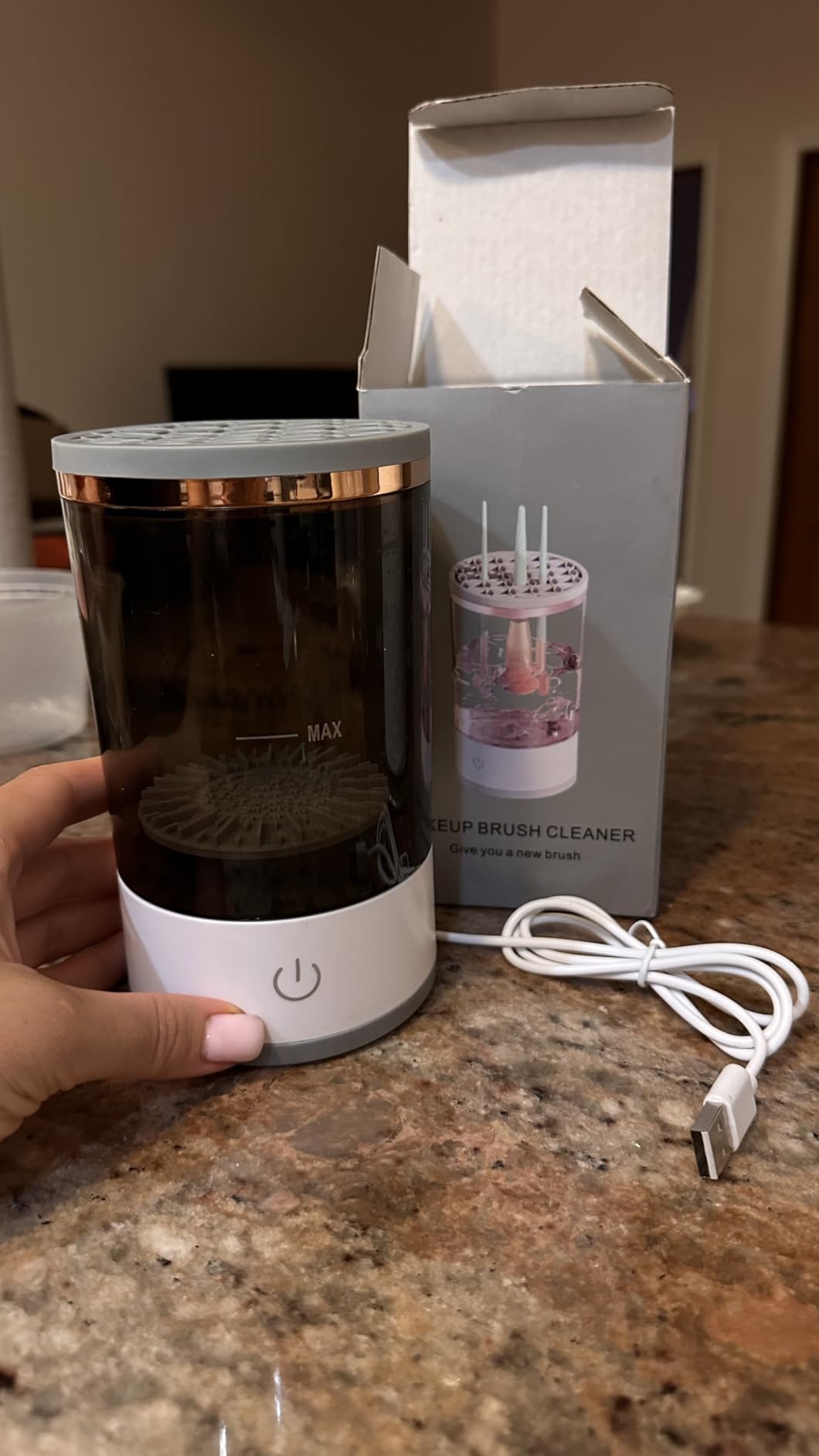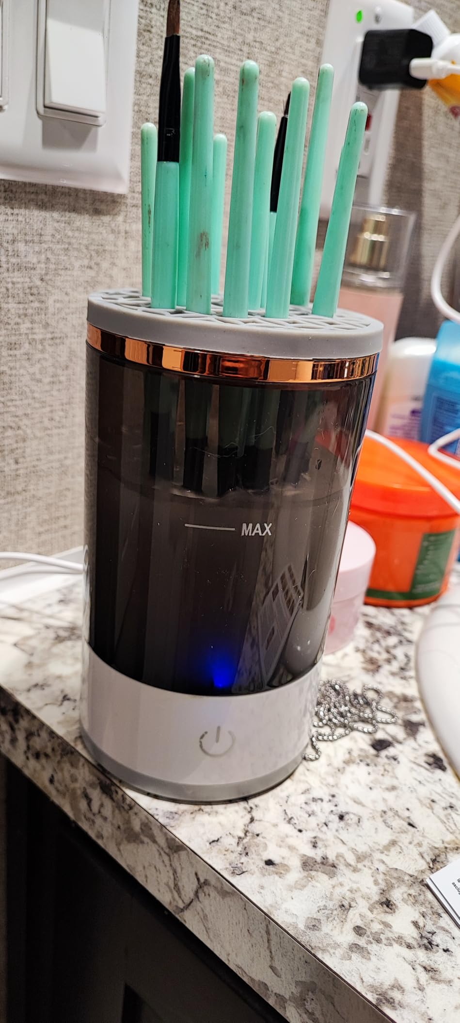 يا جماعة، هالجهاز رهيب، ينظف الفرش بسرعة فائقة وما يتعب اليدين، خلاني أحس بالراحة وأنا أحط المكياج كل يوم. قبل كنت أغسلها باليد وتطلع مو نظيفة زين، بس الحين بشرتي صافية وأنا مبسوطة مرة.